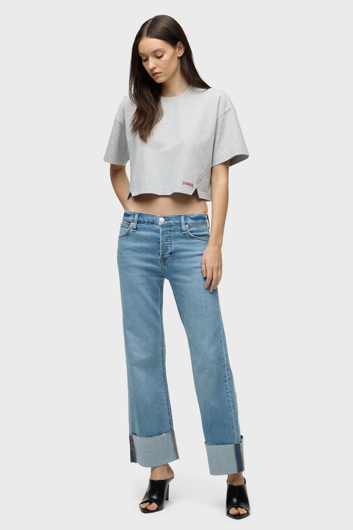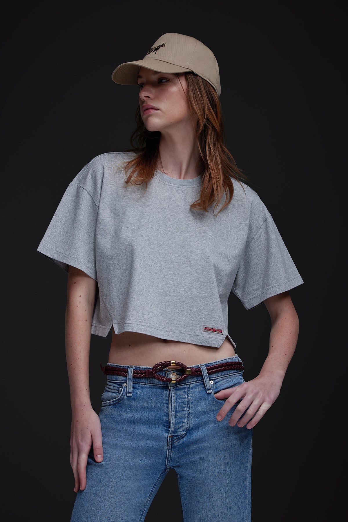 The Short Sleeve Forward Seam Tee in Heather Grey is a year-round essential. Complete with slightly cropped fit, short sleeves, forward seam detailing and heritage Union Jack flag. -