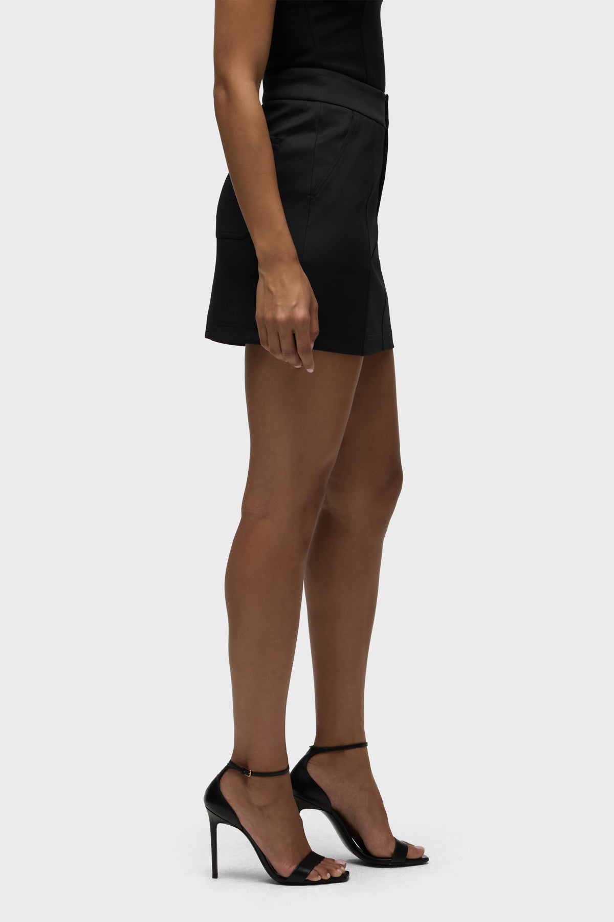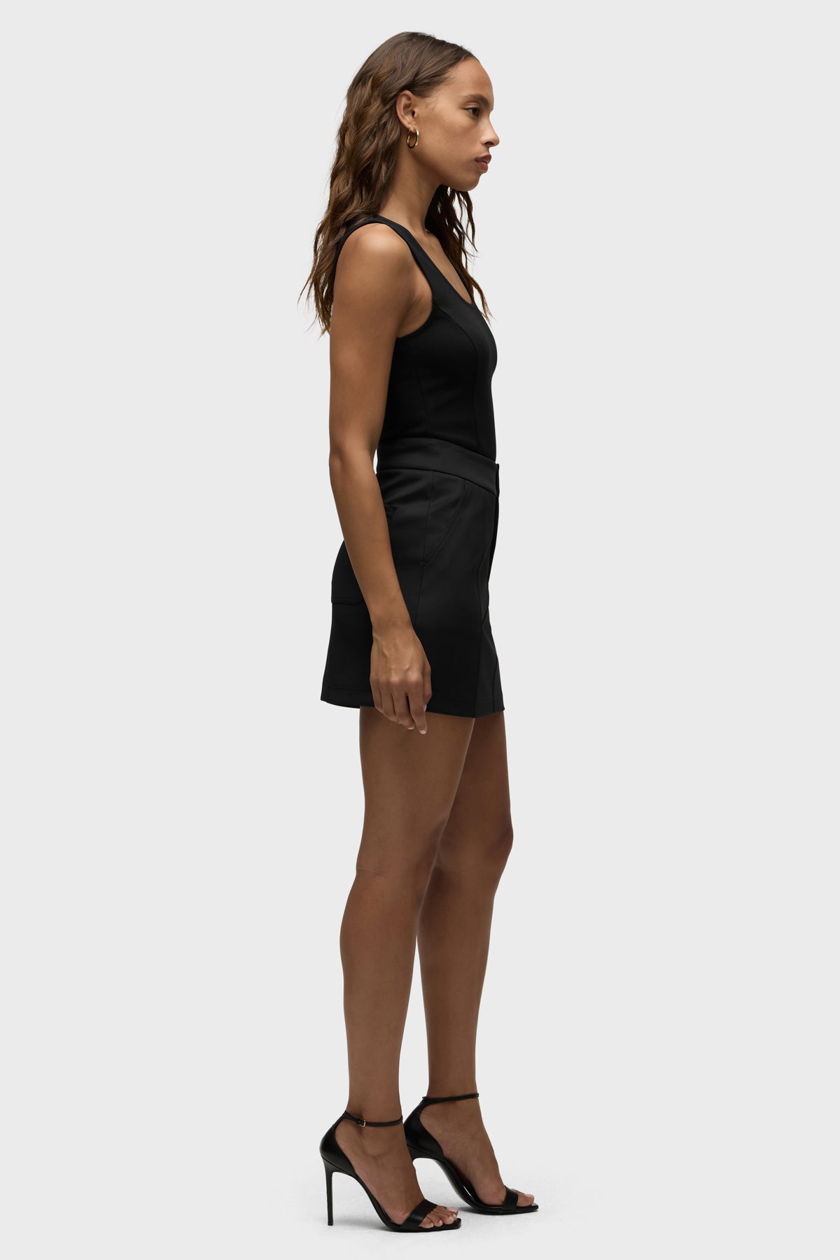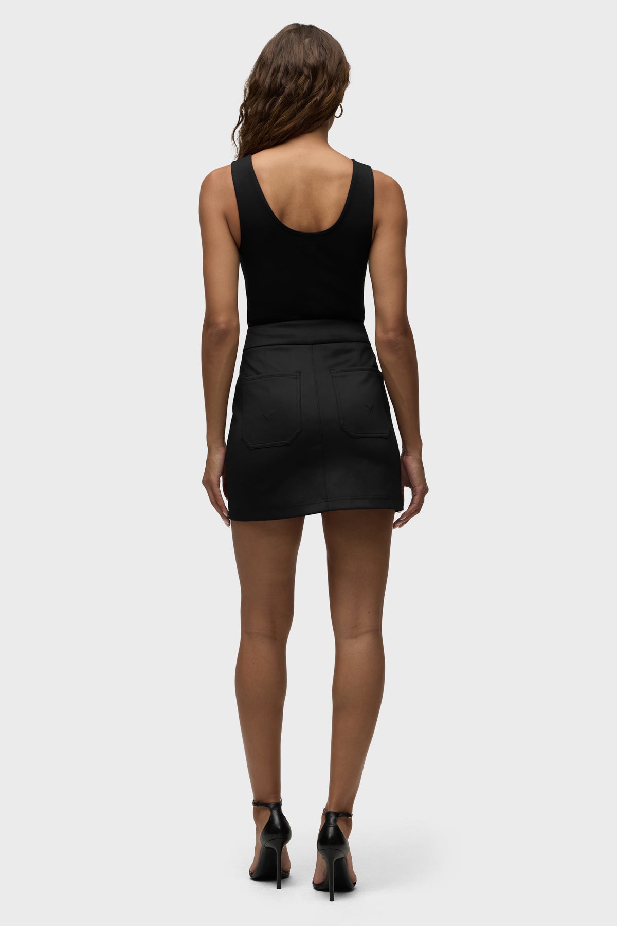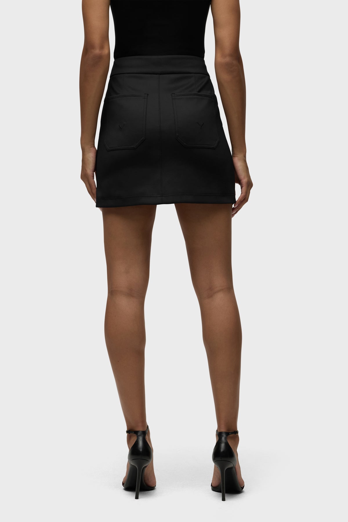 Our Seamed Mini Skirt in Black Beauty is made from our new sculpting rib-scuba knit, a soft and flexible feel with every move. High-rise, A-line shape. Complete with seam details and trouser-style slant pockets. -