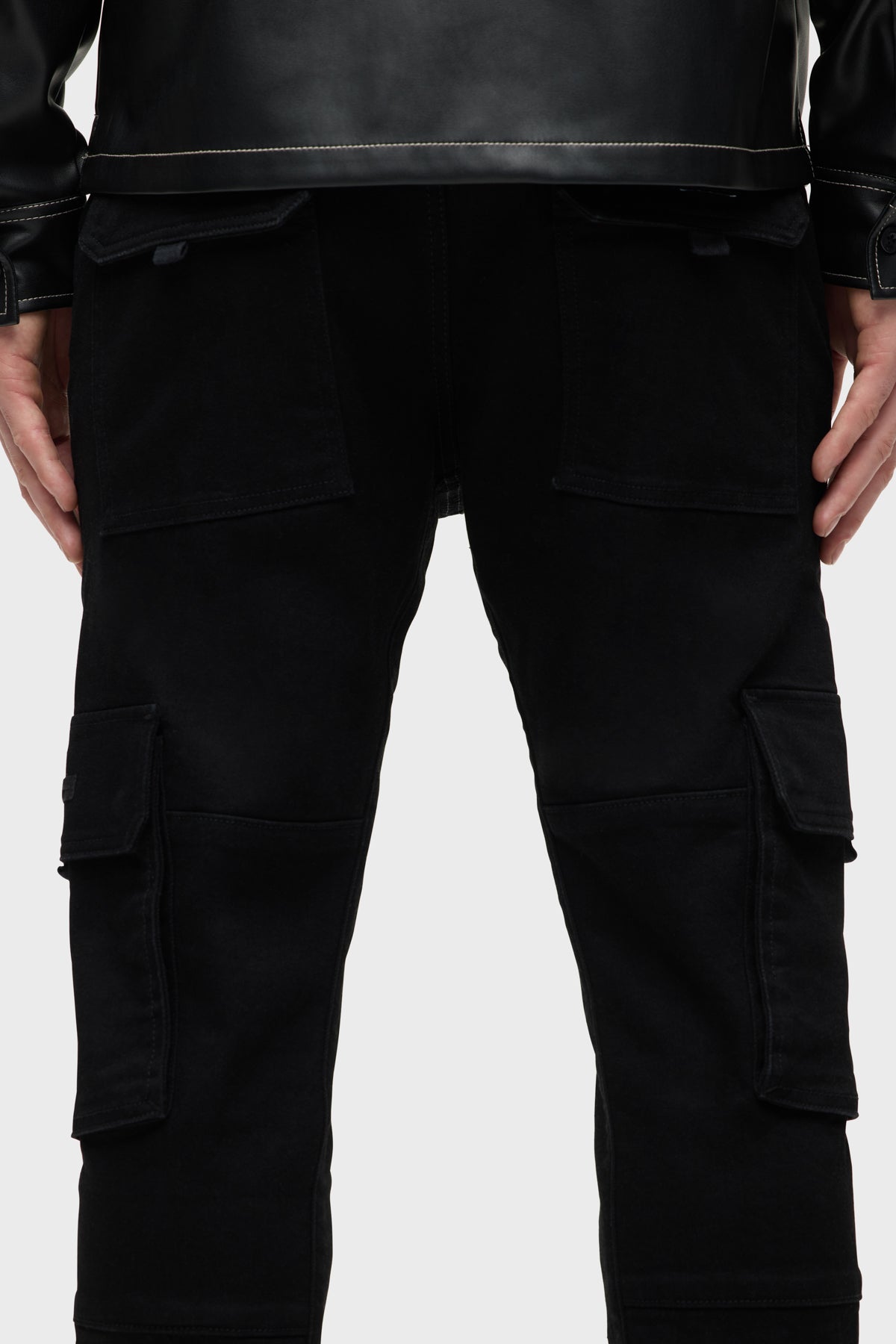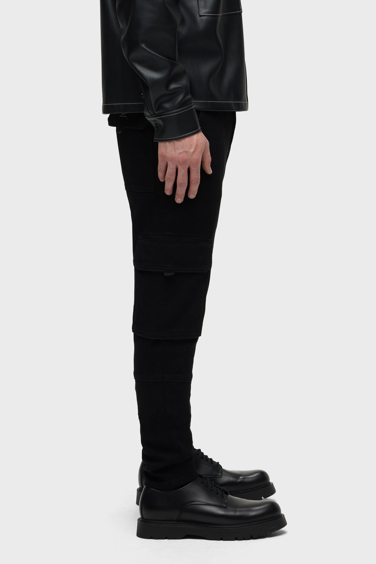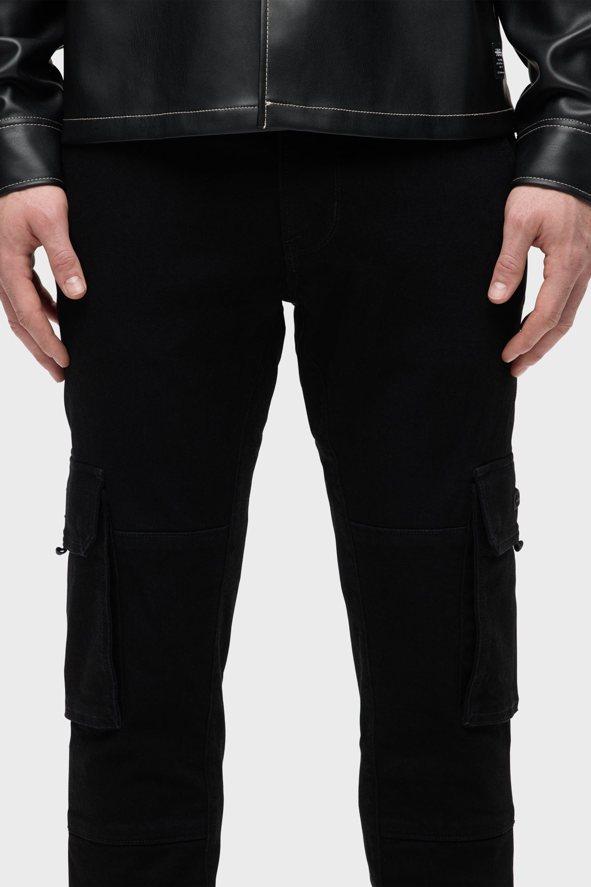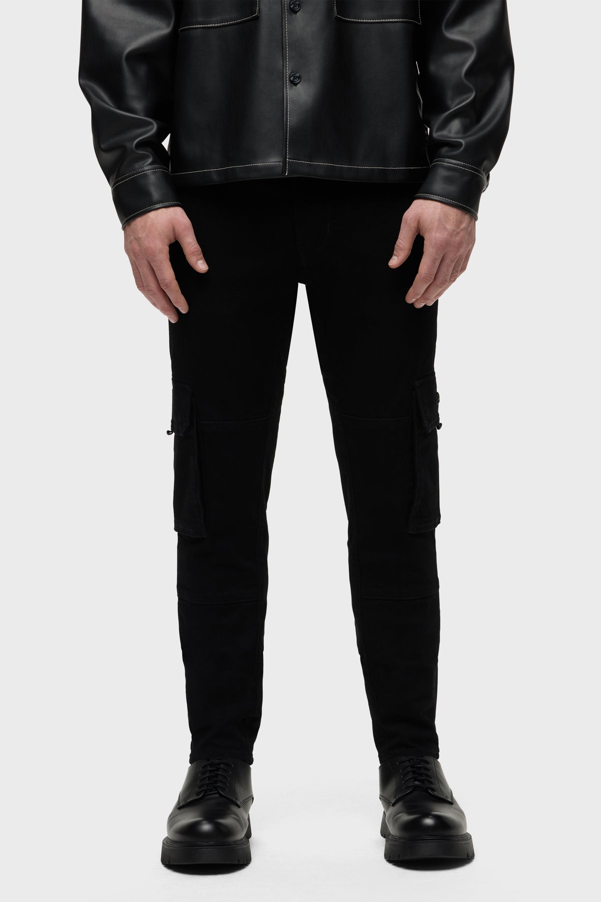 For a snug fit, look no further than our Skinny Cargo. Mid-rise, slim through the hip and thigh with a narrow leg. The black rinse Raven wash is finished with cargo pockets and twill tape pulls. -