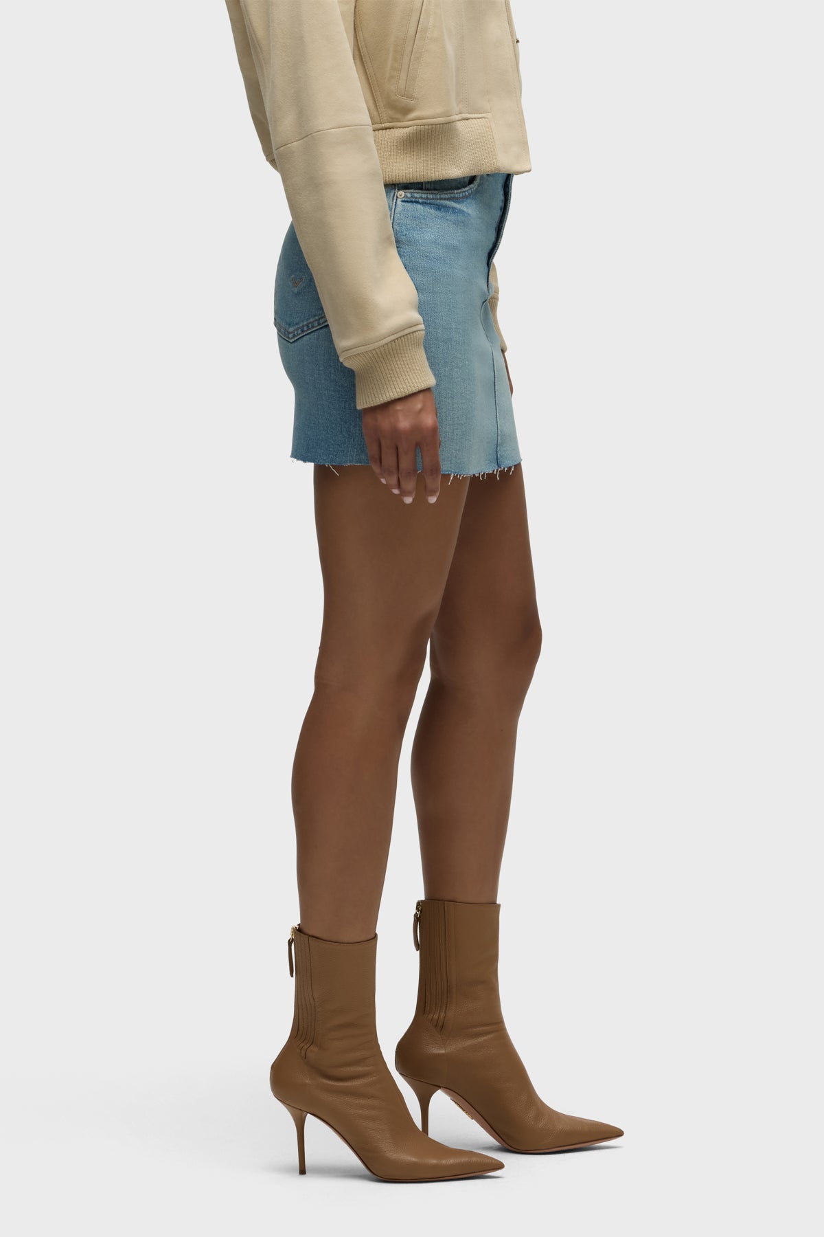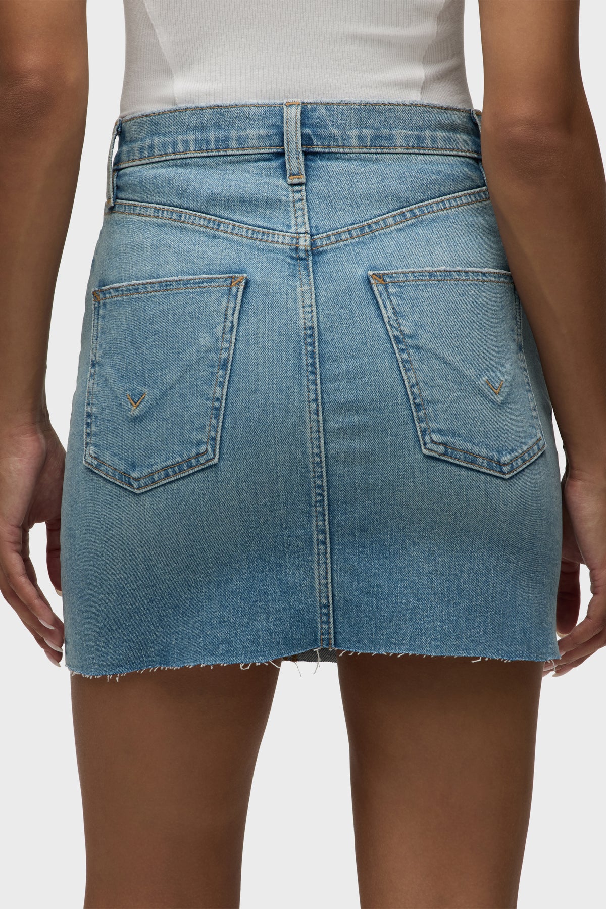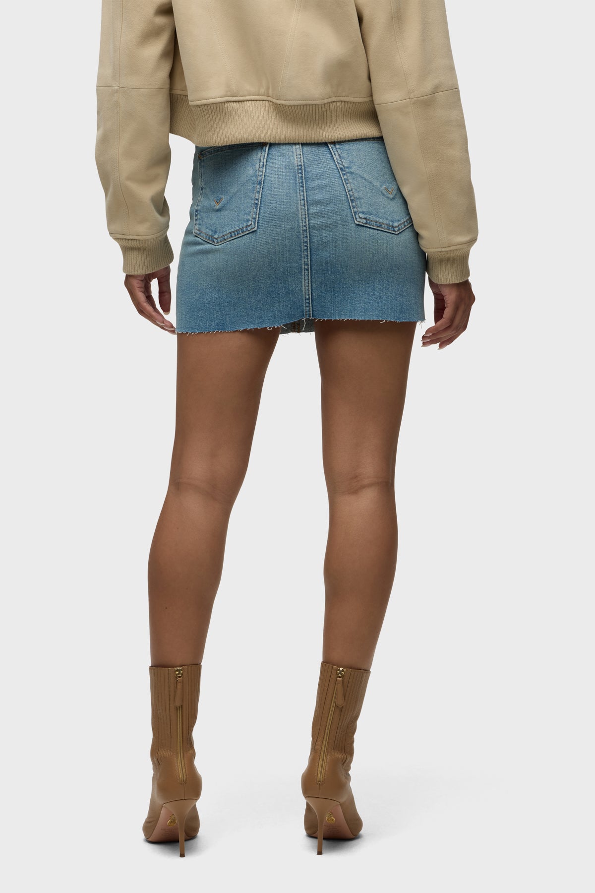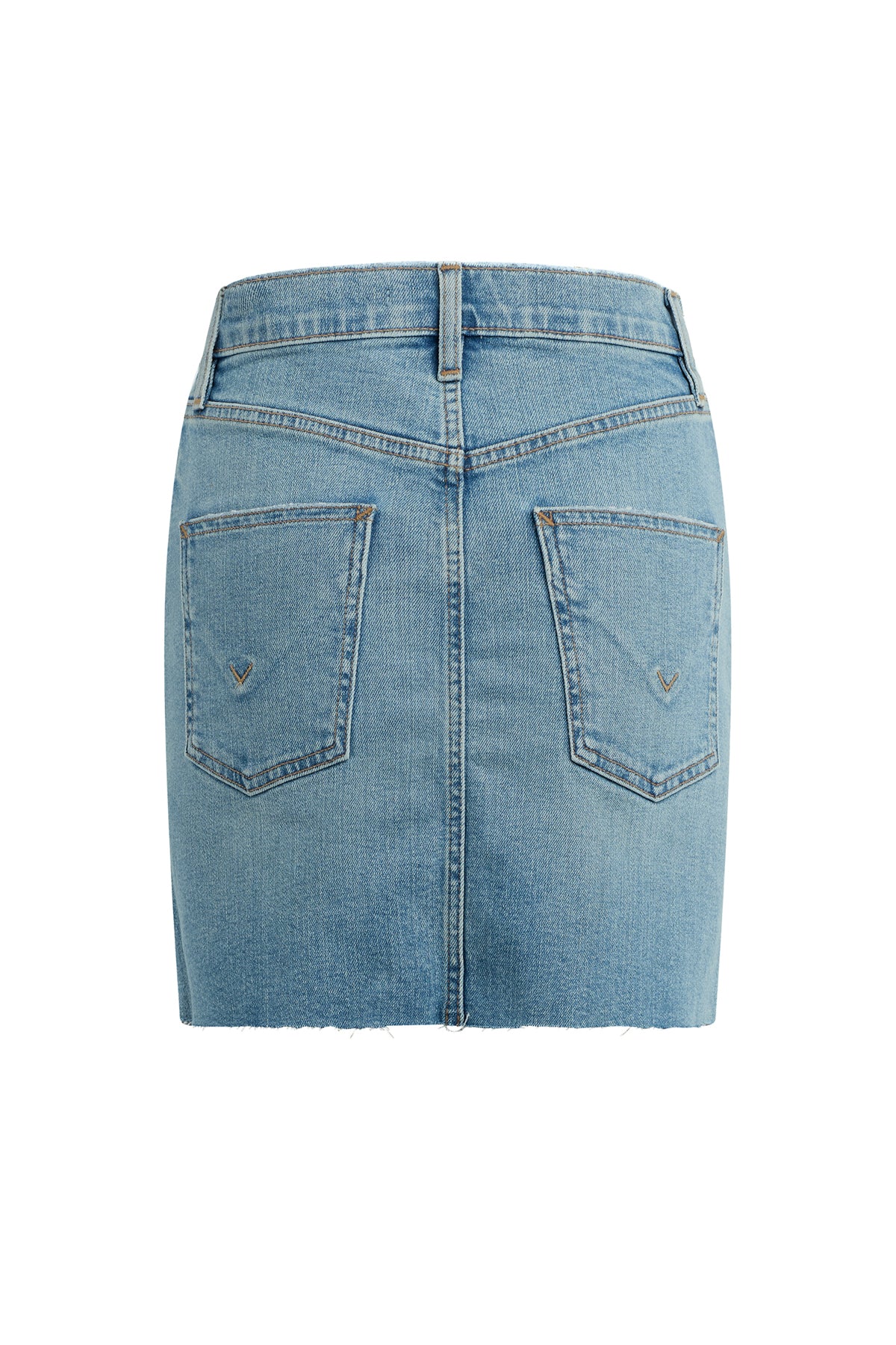 Our Viper Mini Skirt in medium-light Aviator is made from premium comfort stretch denim for flexibility. High-rise, A-line shape. Complete with whiskering, a raw hem and grinding along the edges.