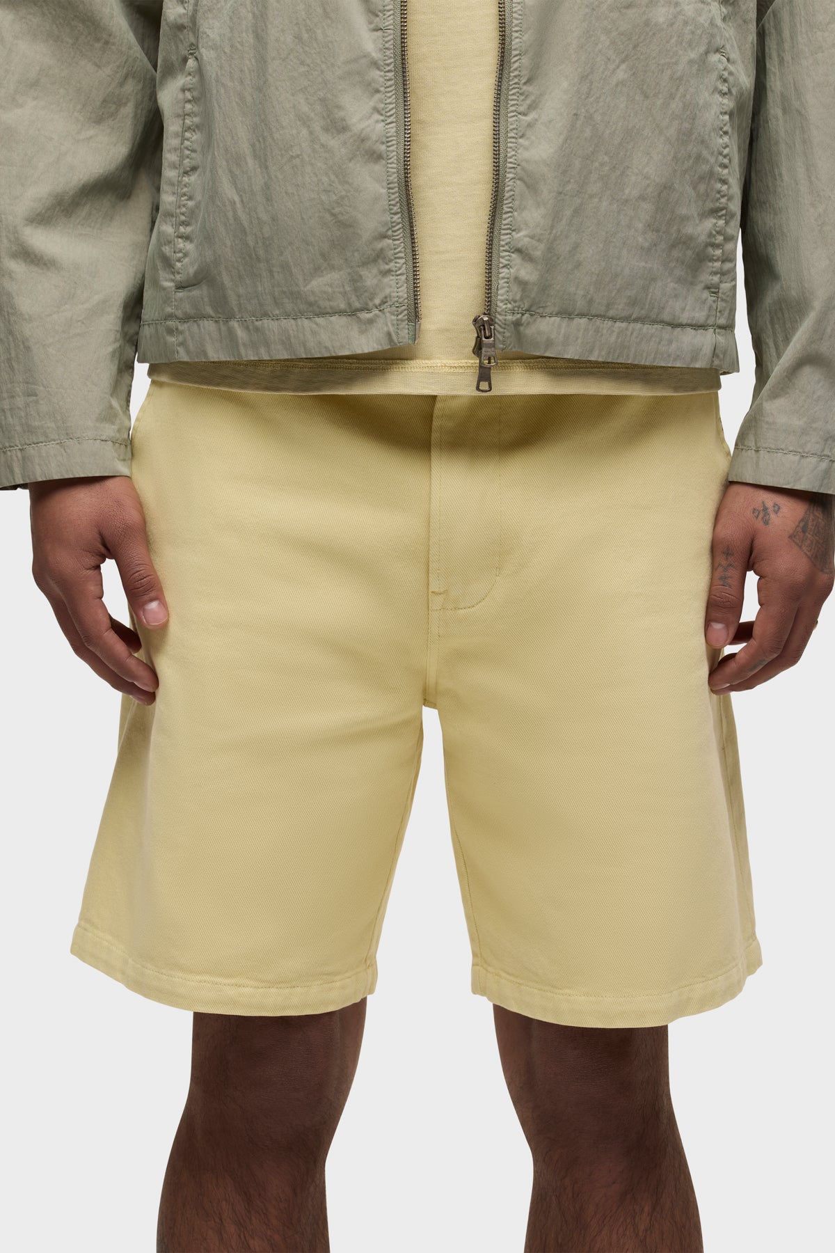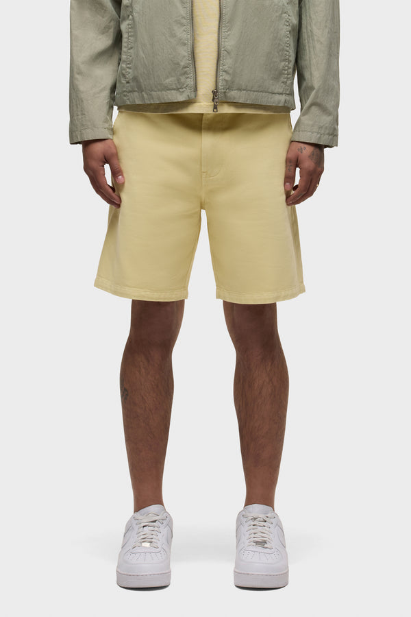 Our Venice Chino Short in Sol is an easy, slim-straight staple cut from a lightweight twill in a reactive overdyed dark yellow shade. The pair features classic slant pockets and added stretch for superior softness, comfort and flexibility. -