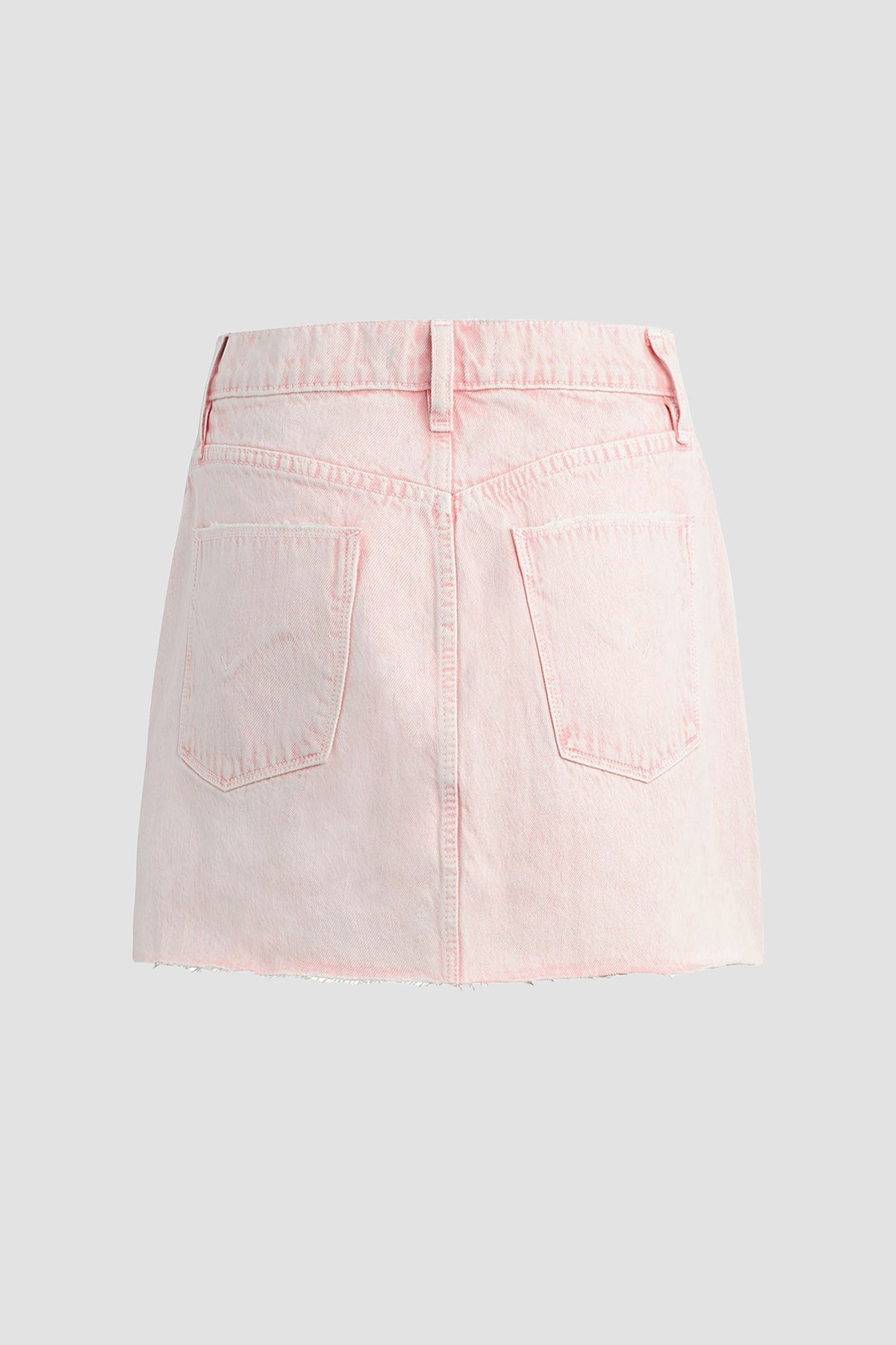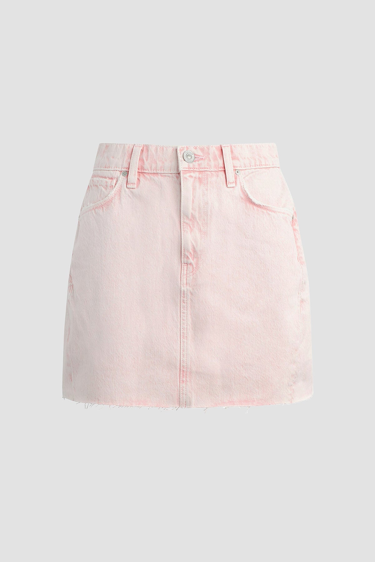 Our Viper Mini Skirt in Carmine Rose Miner is made from premium non-stretch denim specially treated for a washed-out effect. High-rise, A-line shape. Complete with a cutoff hem. -