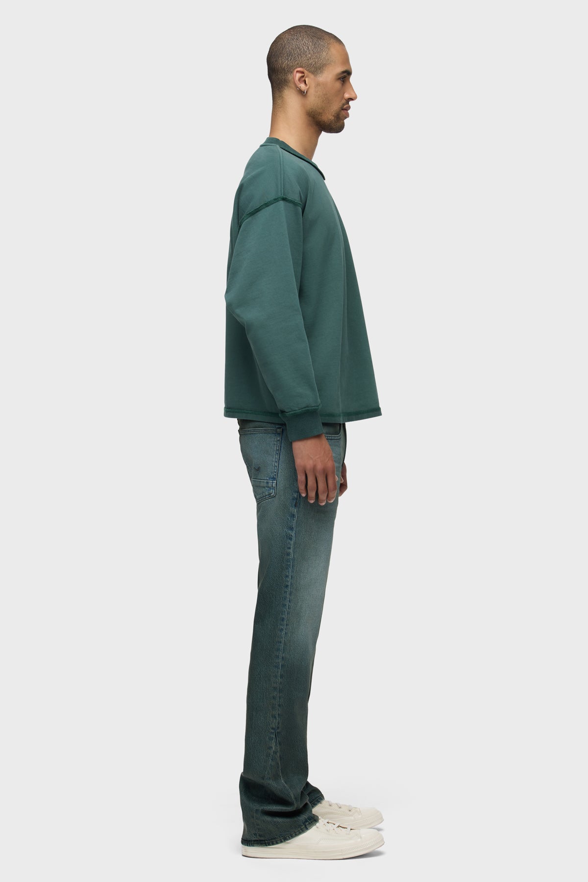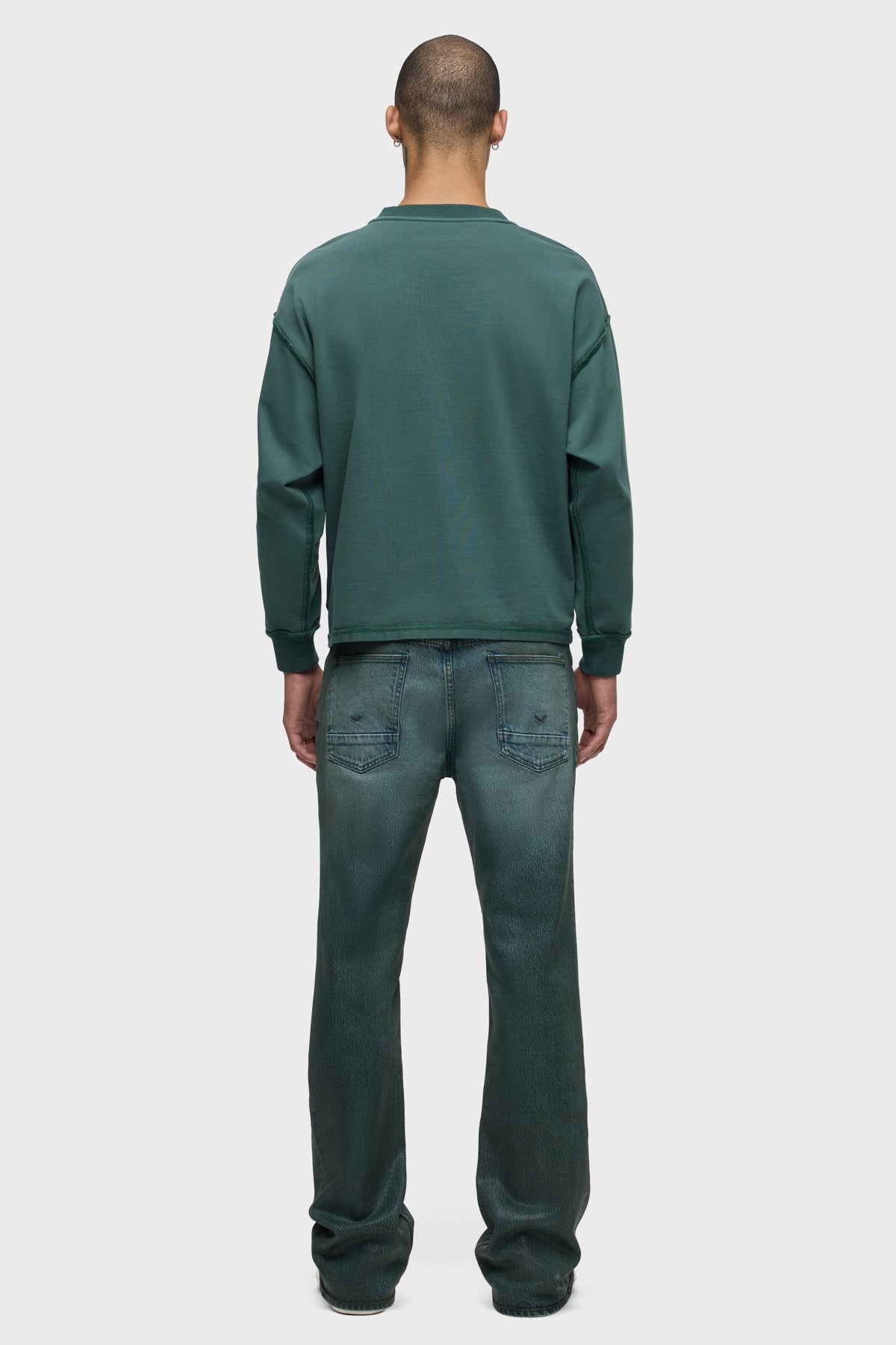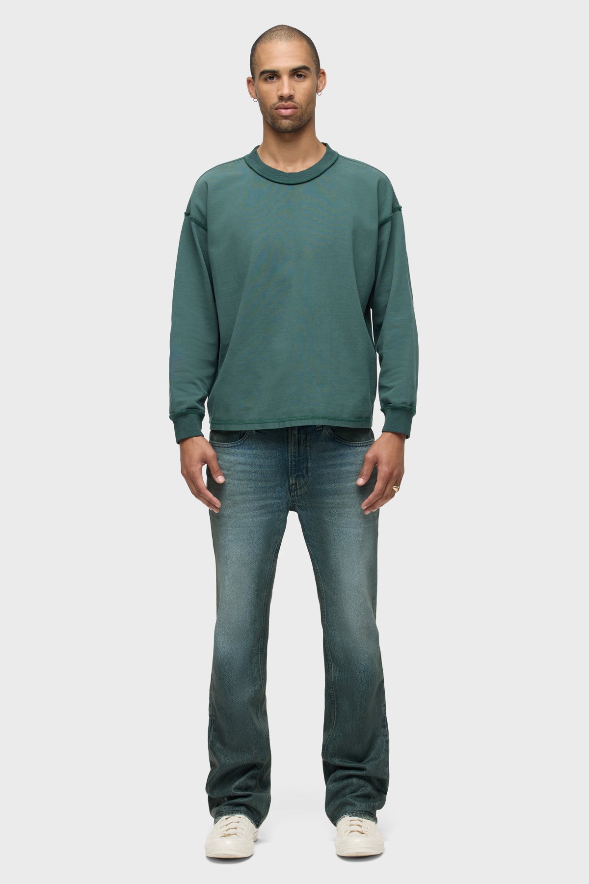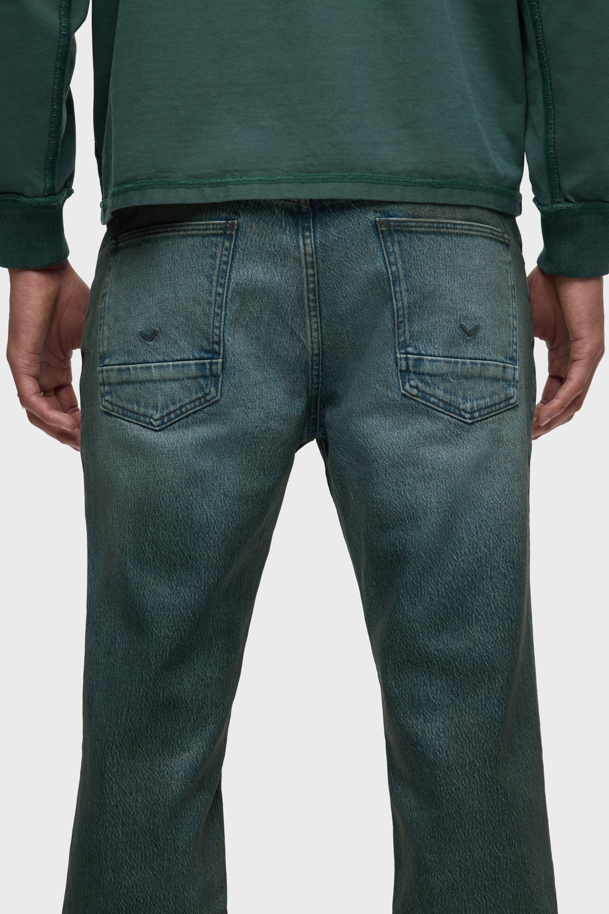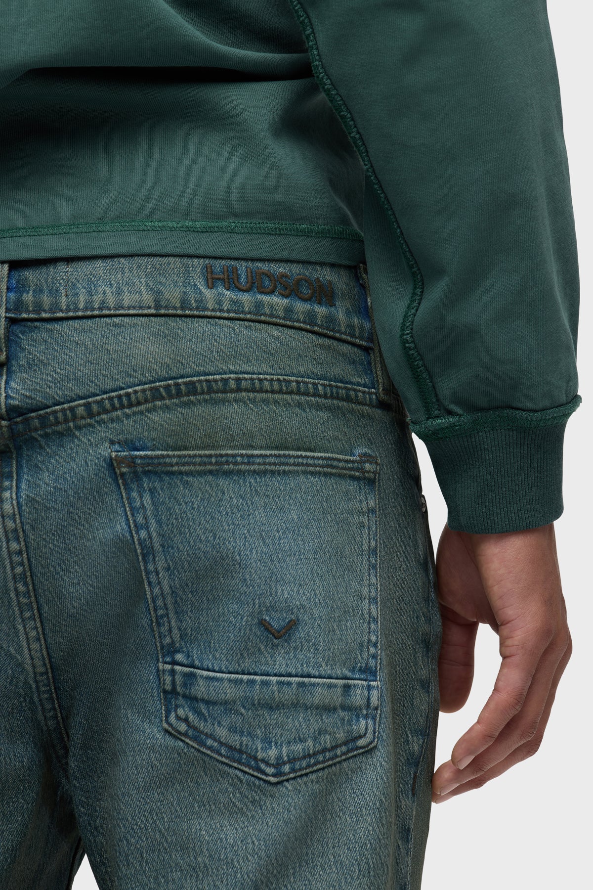 Our Walker Kick Flare is a mid rise, slim through the hip and thigh with a flared bootcut hem. Cut from premium comfort stretch denim, Coated Pine is a medium, vintage-inspired wash with a dark green base and mist coating for a subtle sheen and uneven pigmentation. Finished with classic five-pocket details, tonal stitching, matte nickel hardware and Hudson embroidery on back waistband. -