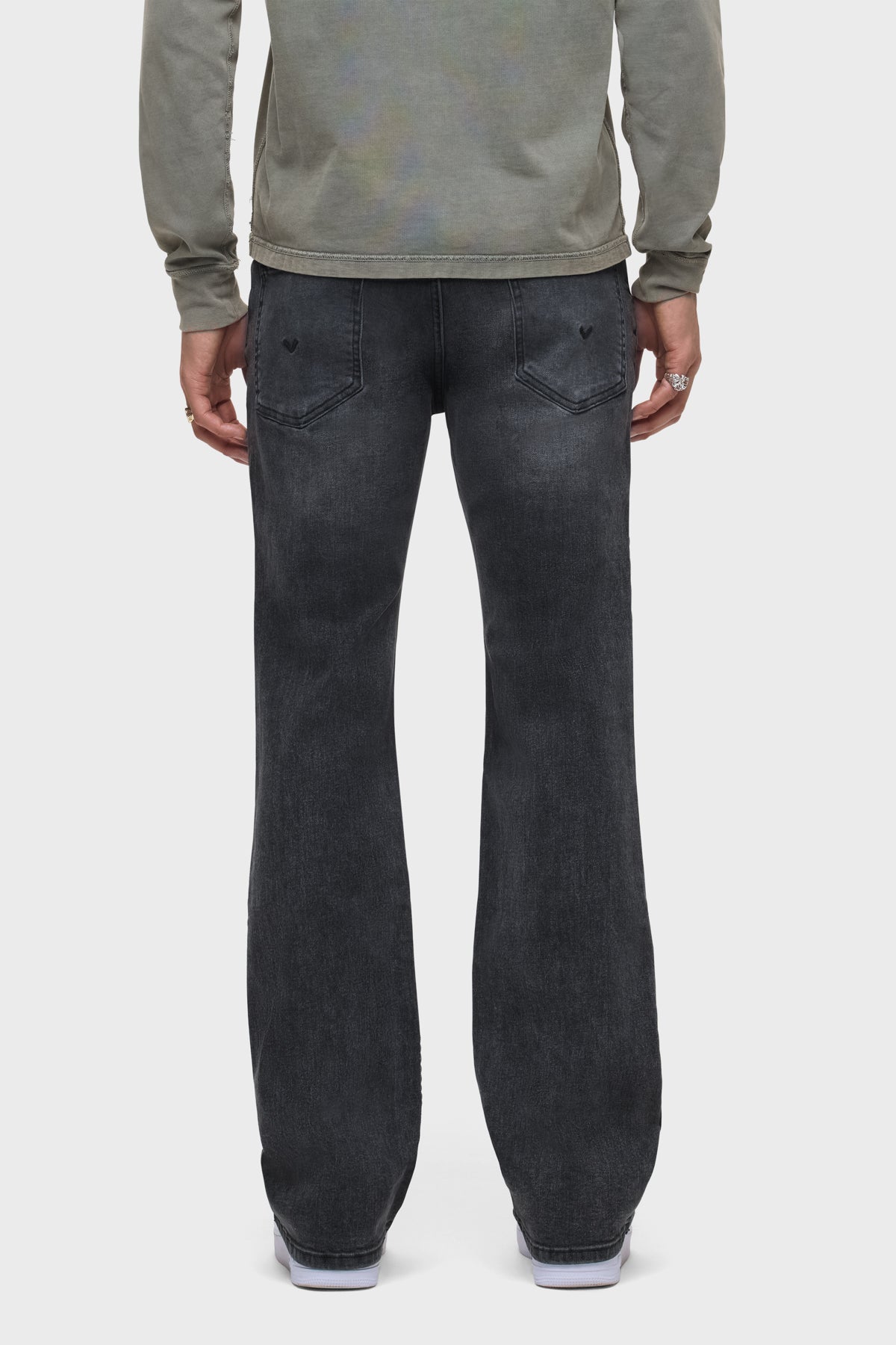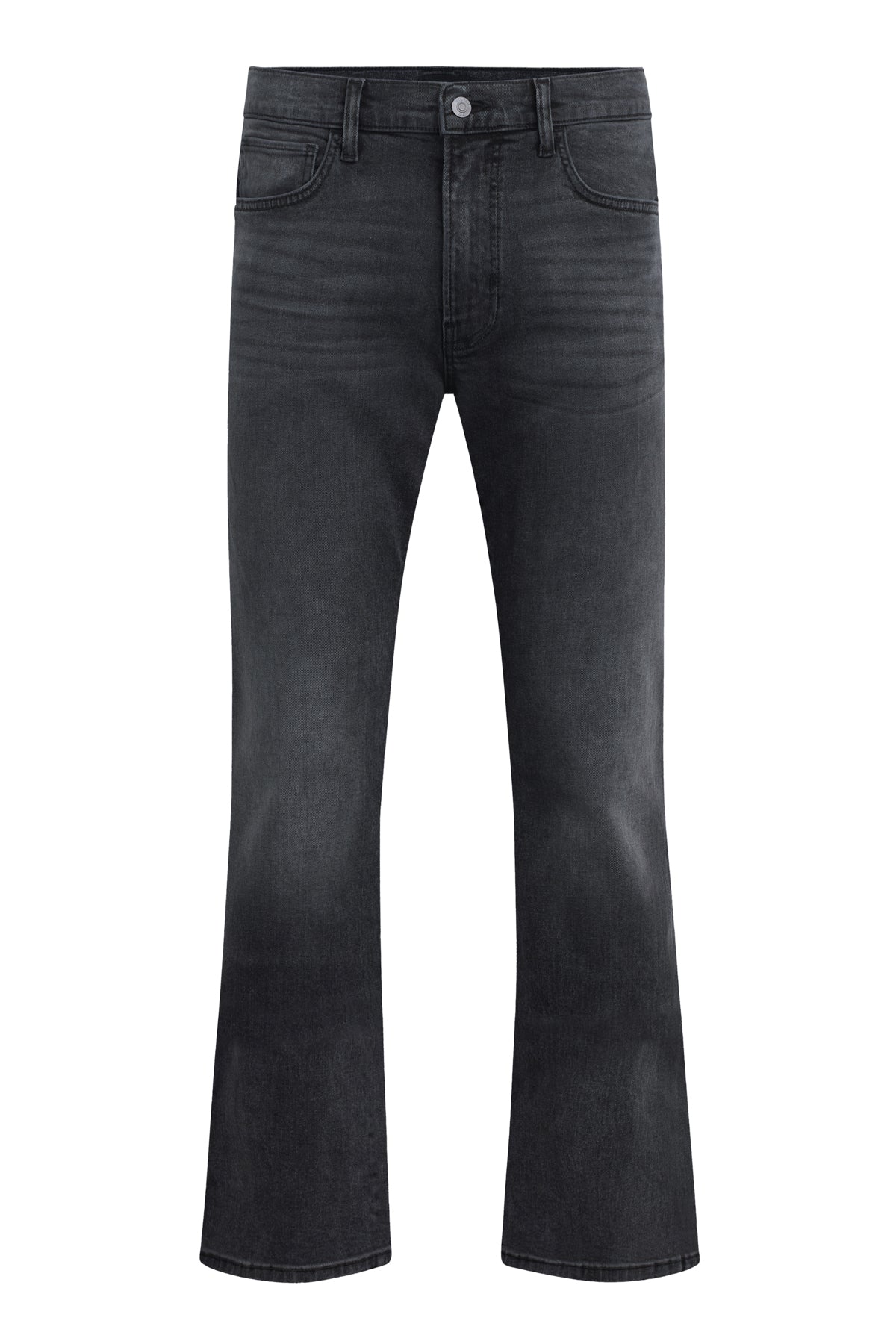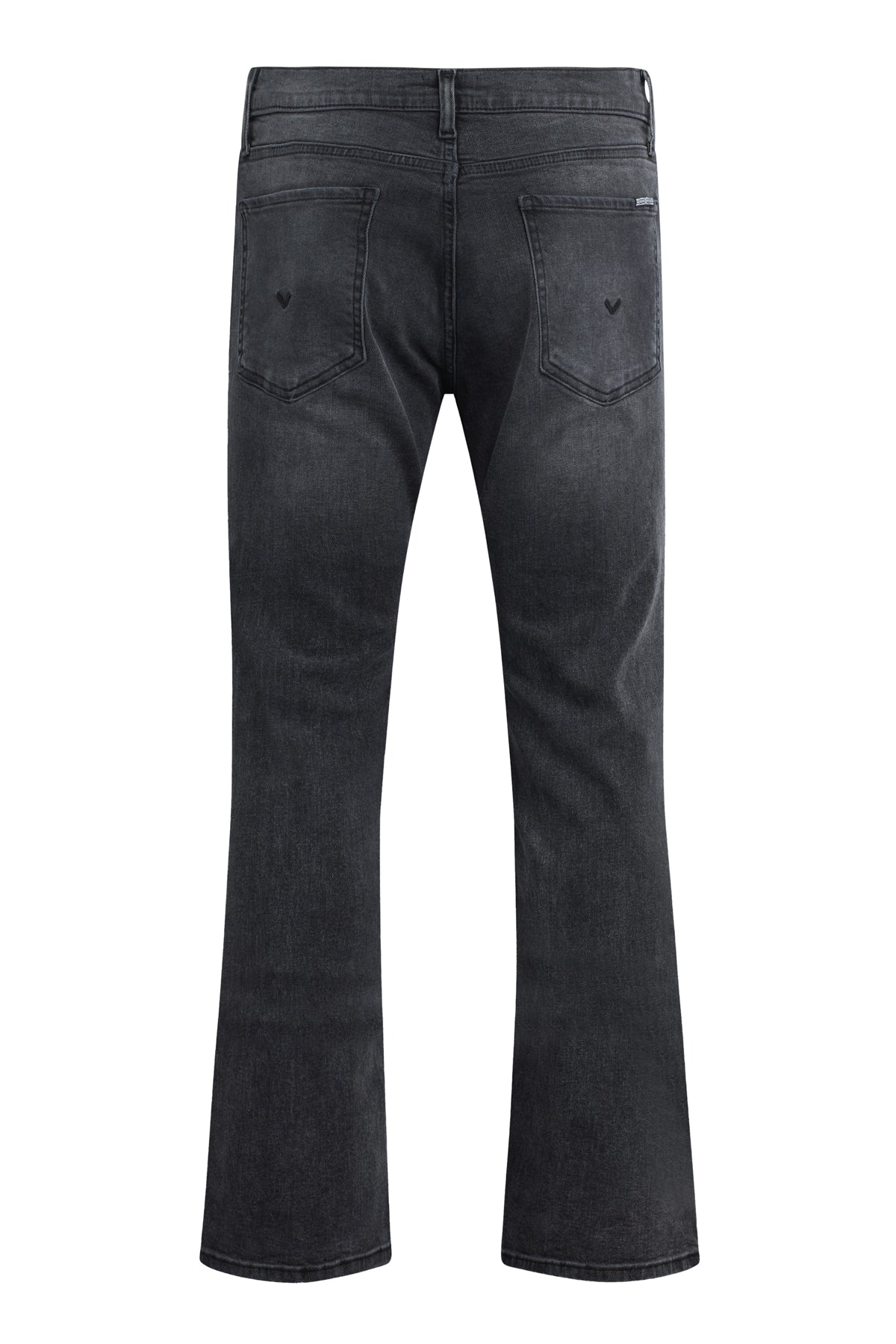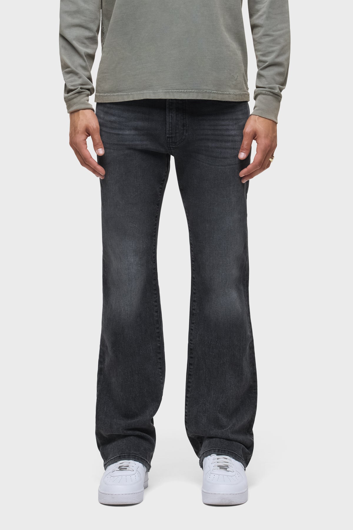 Our Walker Kick Flare Jean has a mid-rise and slim fit through the hip and thigh with a flared bootcut hem. This pair is finished with classic five-pocket detailing and side seams. -