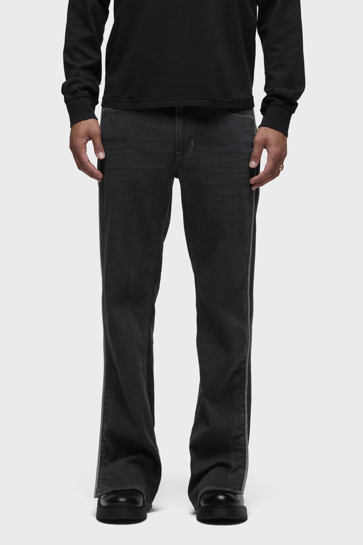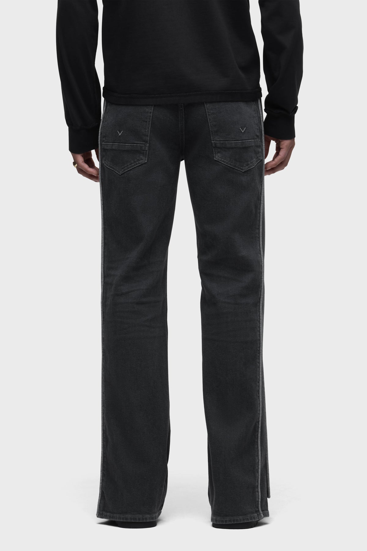 Our Walker Track Jean is an easy, mid-rise fit with a flared bootcut hem and track-inspired details. Cut from premium comfort stretch denim, it features Clinton, a medium-dark indigo wash. This pair is finished with side-seam panels, piping details, hidden hem snaps and classic five-pocket detailing. -