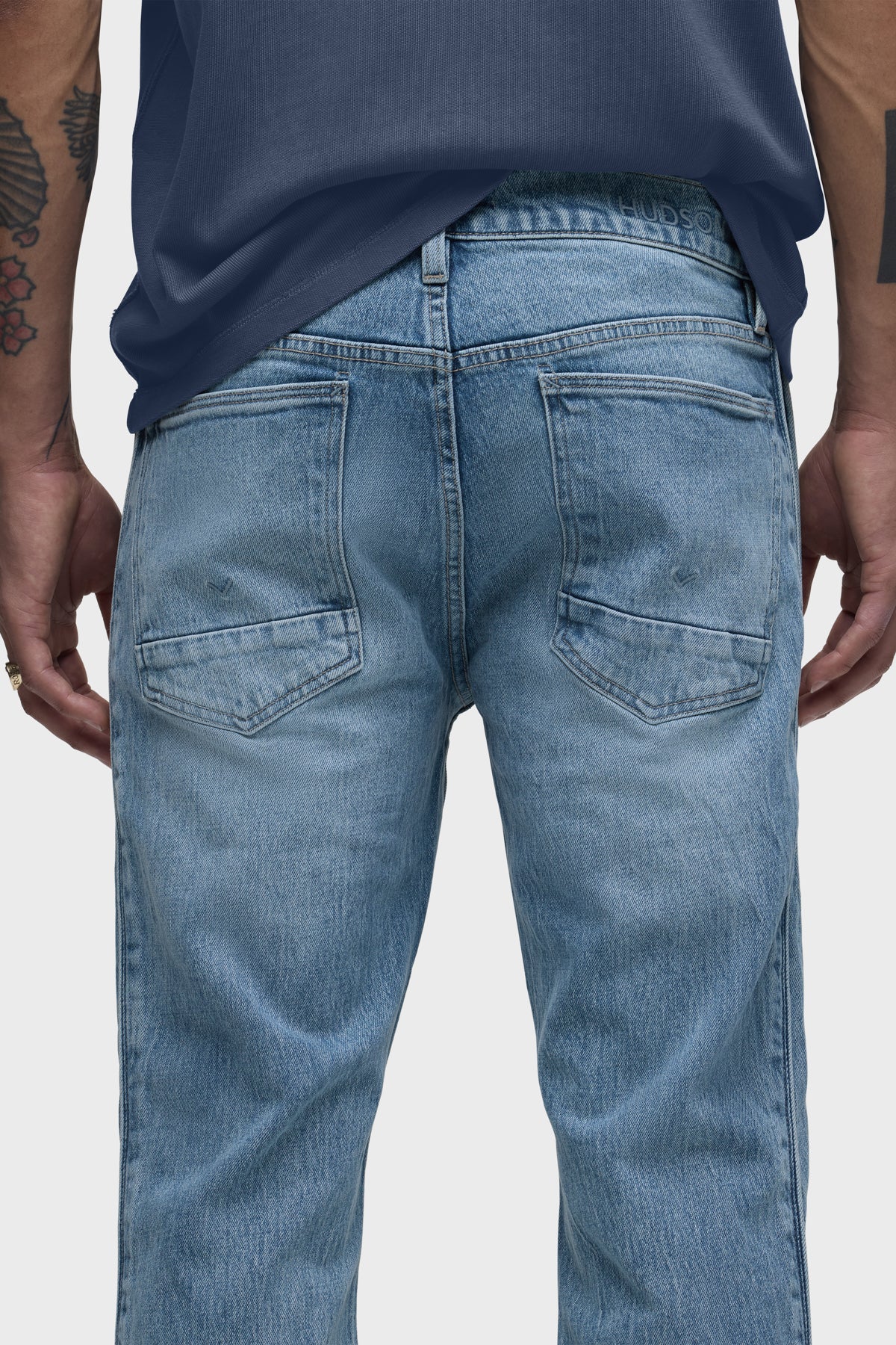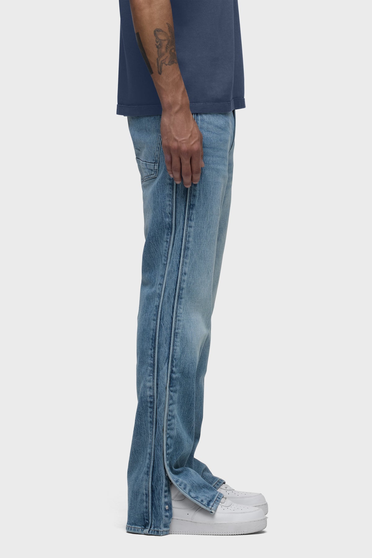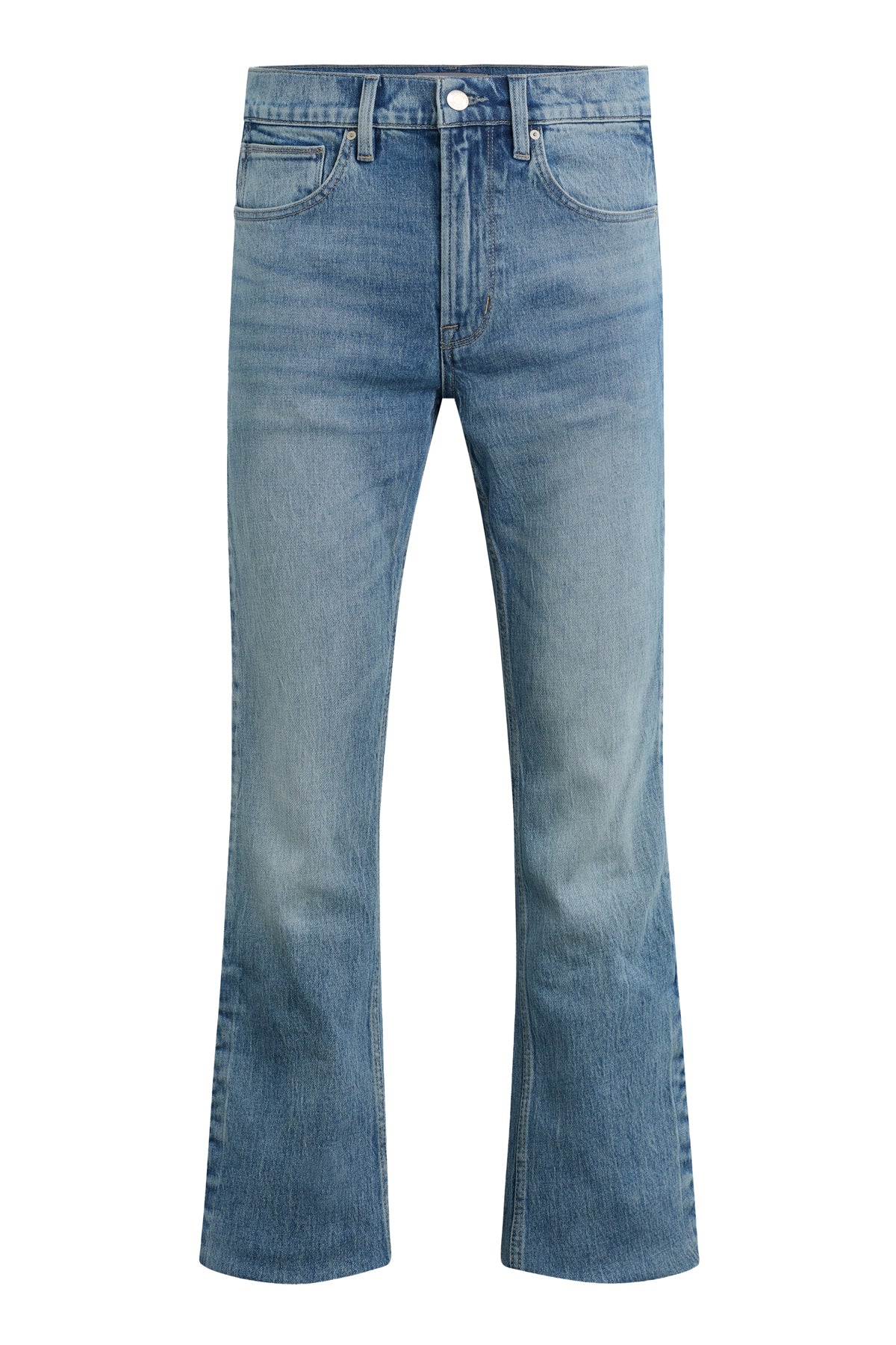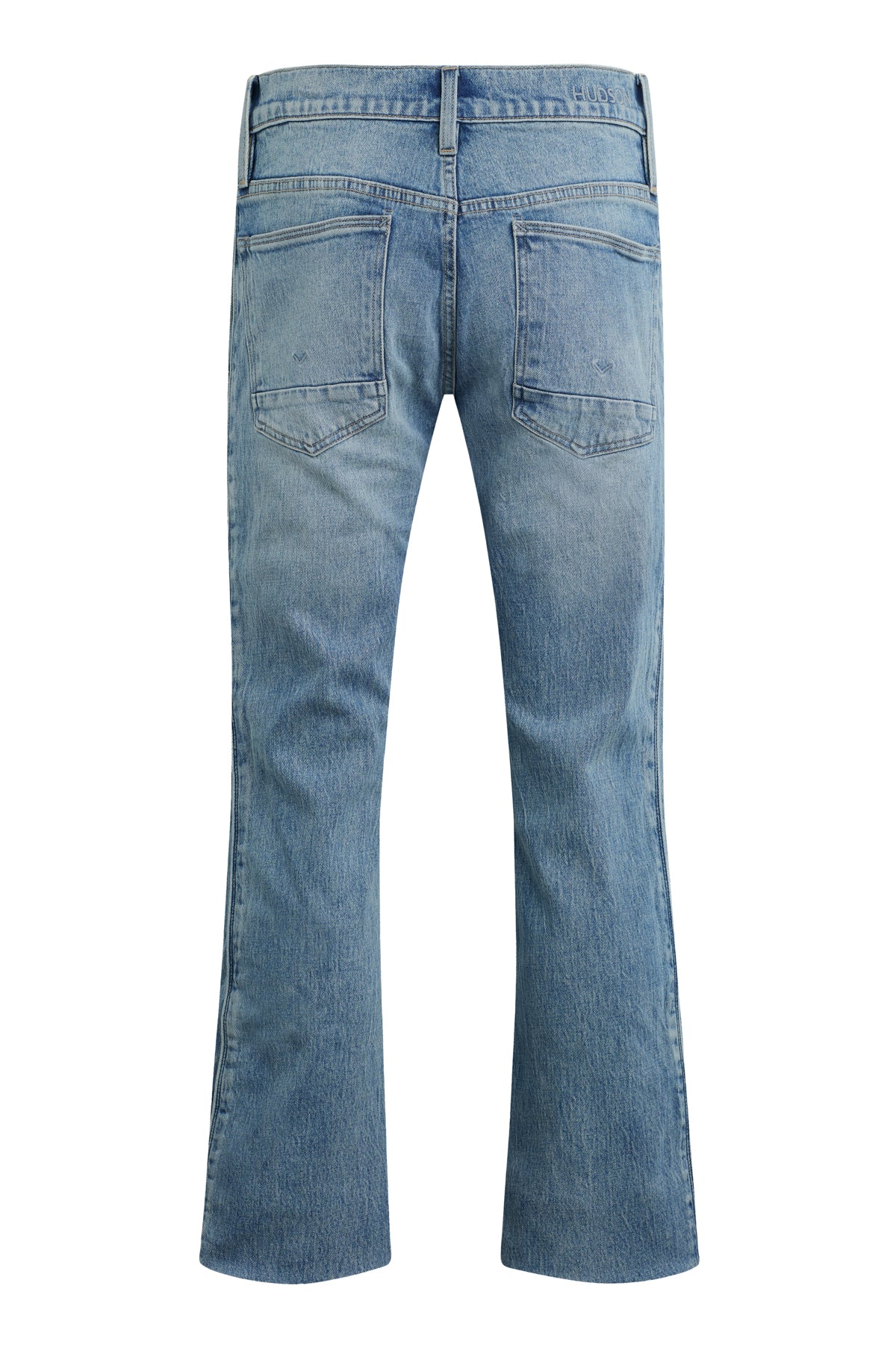 Our Walker Track Jean is an easy, mid-rise fit with a flared bootcut hem and track-inspired details. Cut from premium comfort stretch denim, it features Henderson, a light indigo wash. This pair is finished with side-seam panels, contrast piping details, hidden hem snaps and classic five-pocket detailing. -
