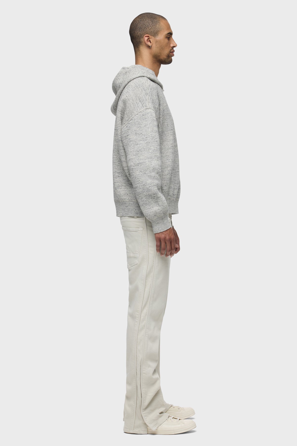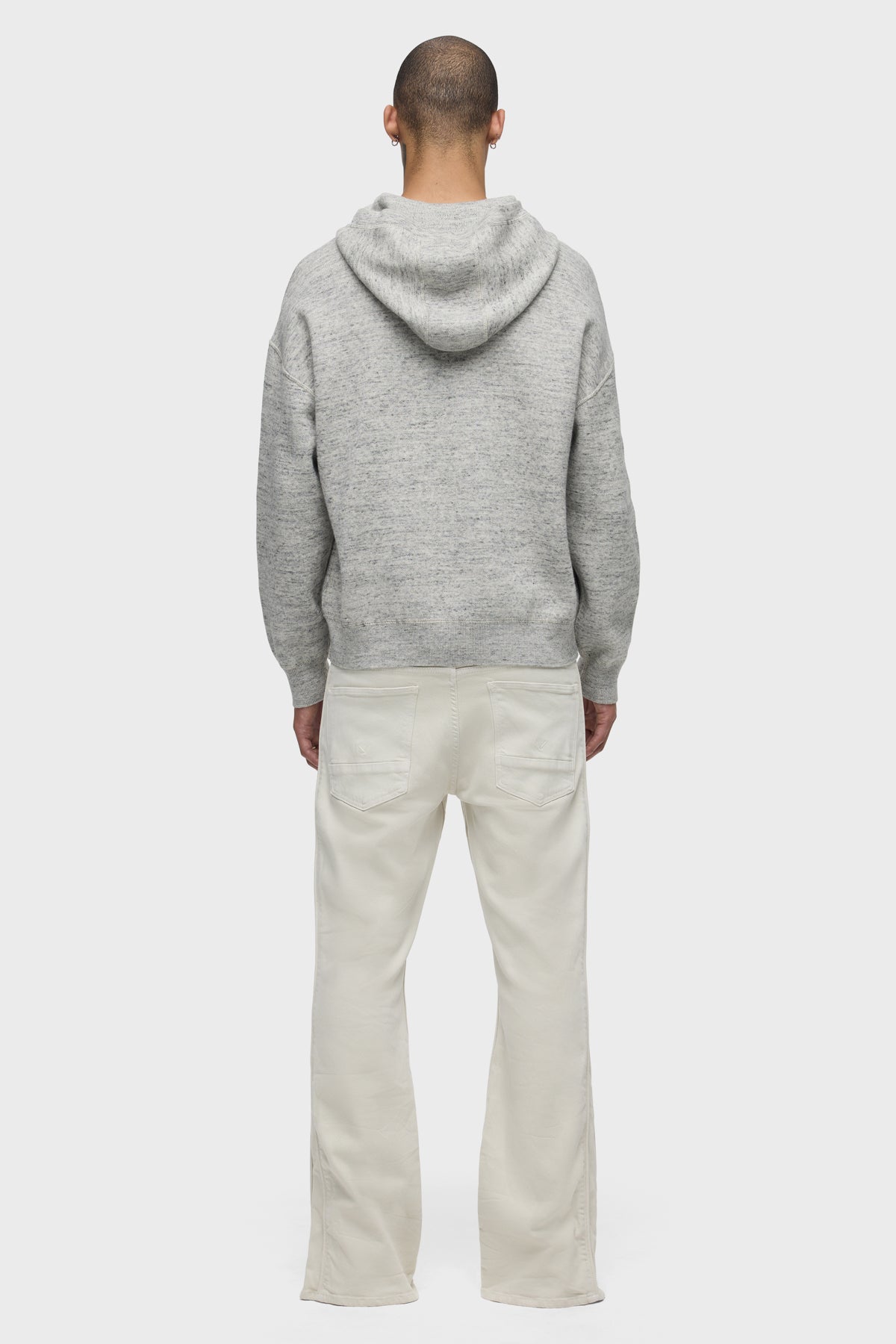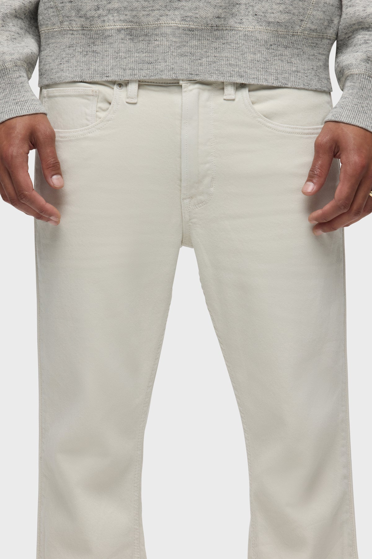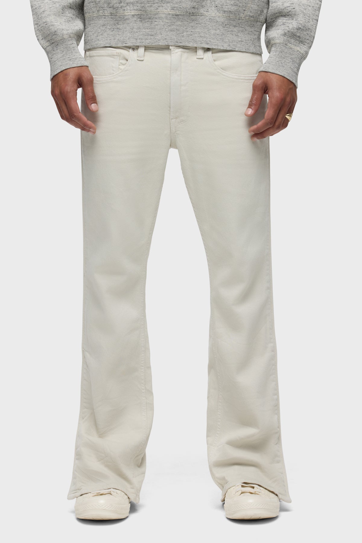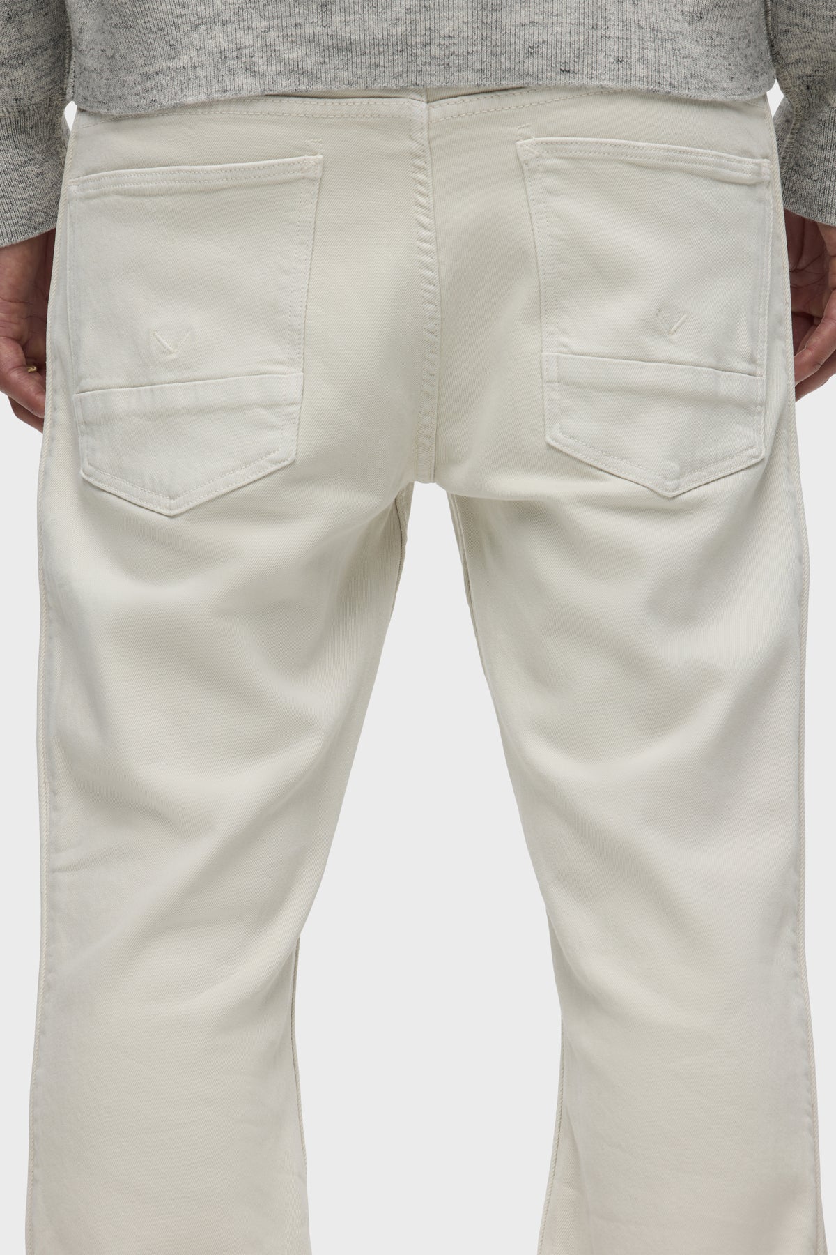 Our Walker Track is an easy, mid-rise fit with a flared bootcut hem and track-inspired details. Cut from comfort stretch twill, the overdyed cream Washed Oak has a subtle worn-in look with classic five-pocket construction, side seam panels and piping details. Finished with hidden hem snaps, grey hardware and signature embroidery on back waistband. -
