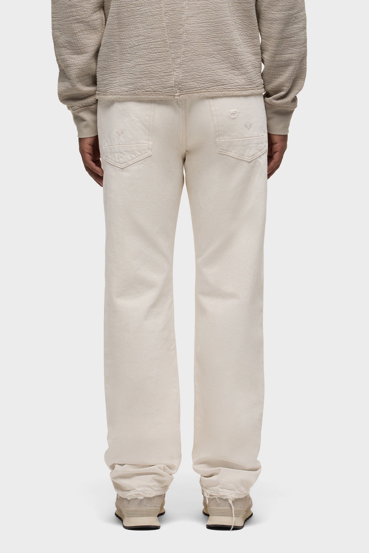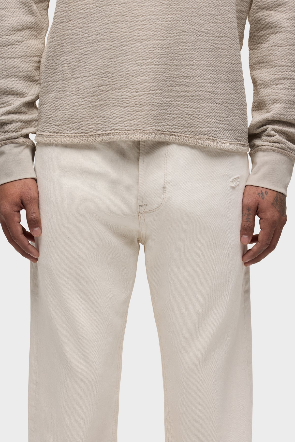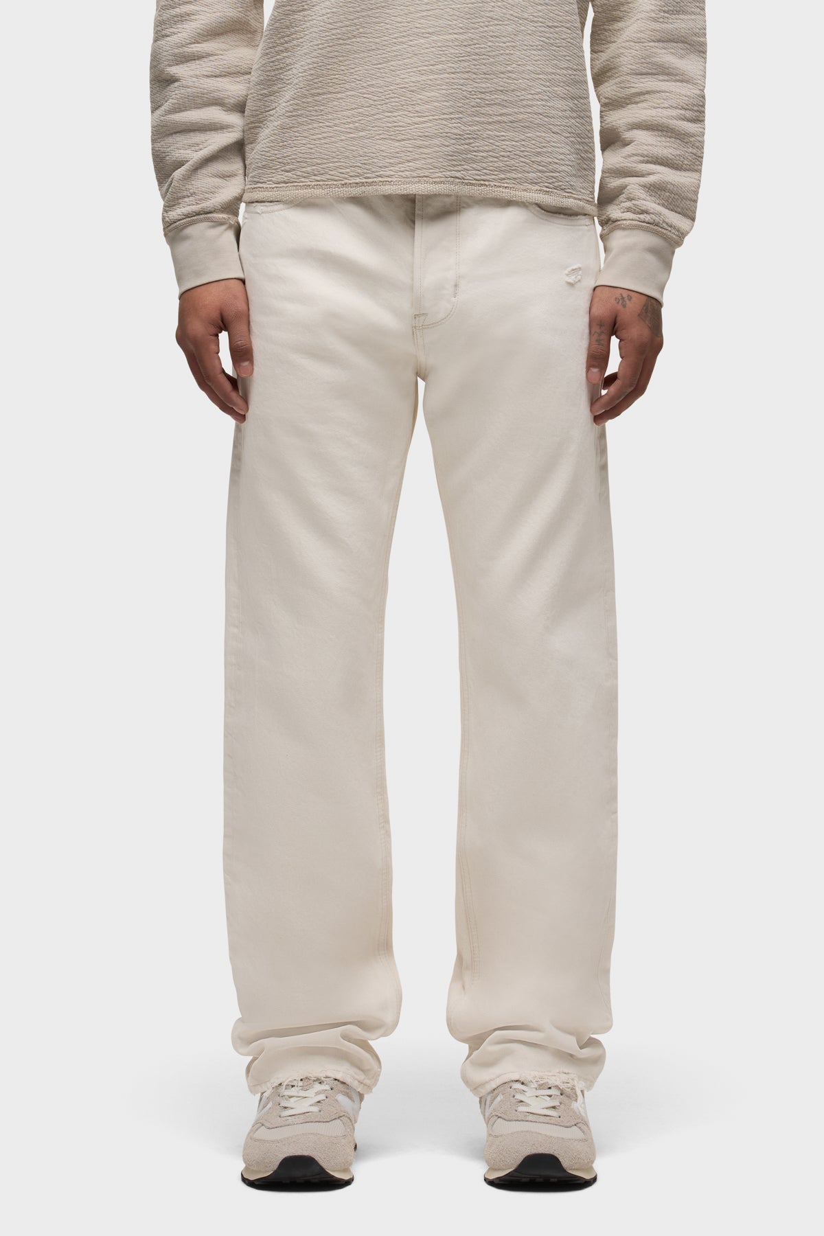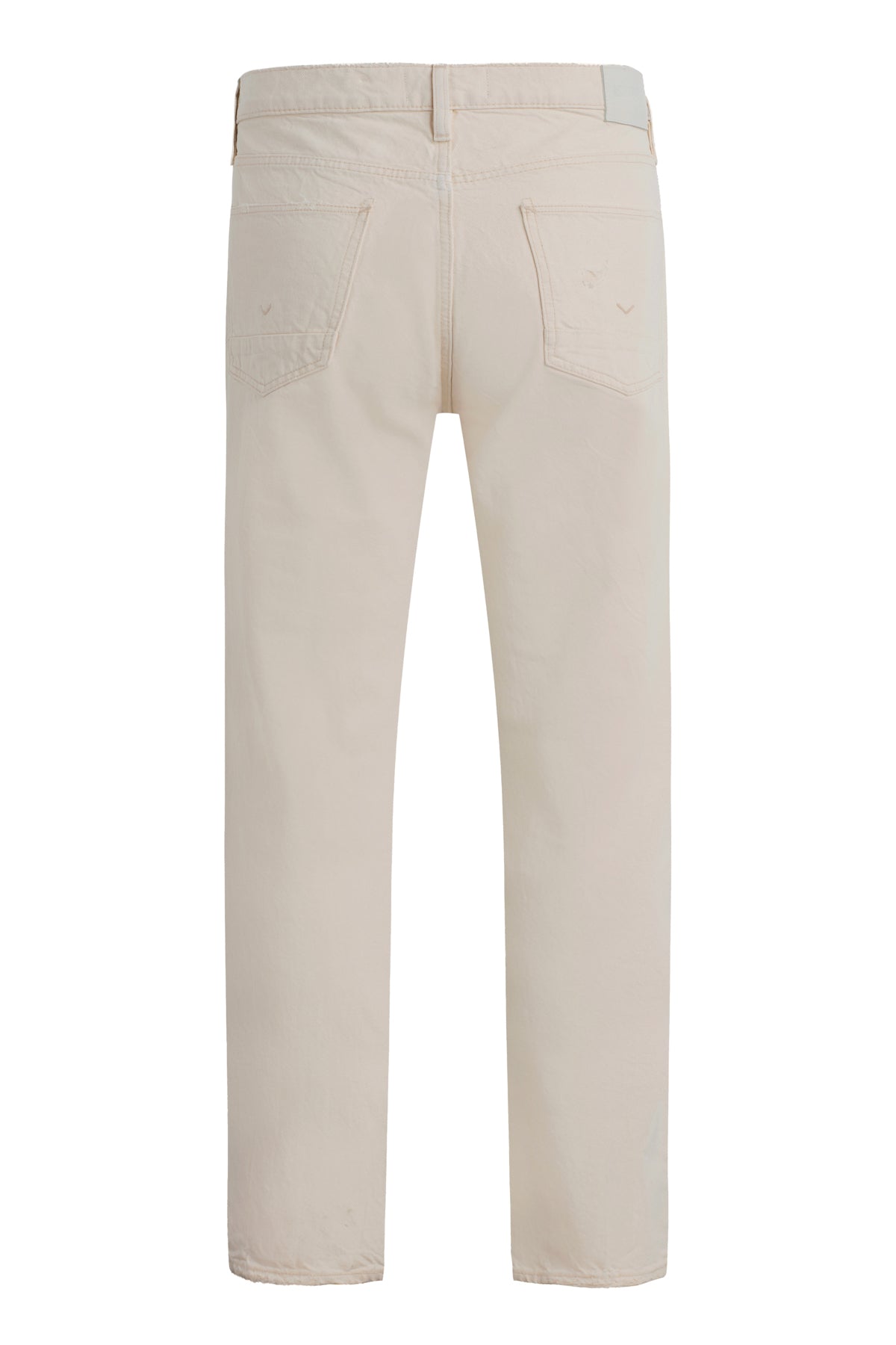 The Wes Classic Straight Leg Pant is a mid-rise, easy straight leg that fits slim through the hip. The distressed, overdyed sand shade, Sands, is finished with stone washing. This pair is made of rigid twill with classic five-pocket detailing, contrast topstitching, stainless steel bright-blasted hardware and a white leather back patch. -