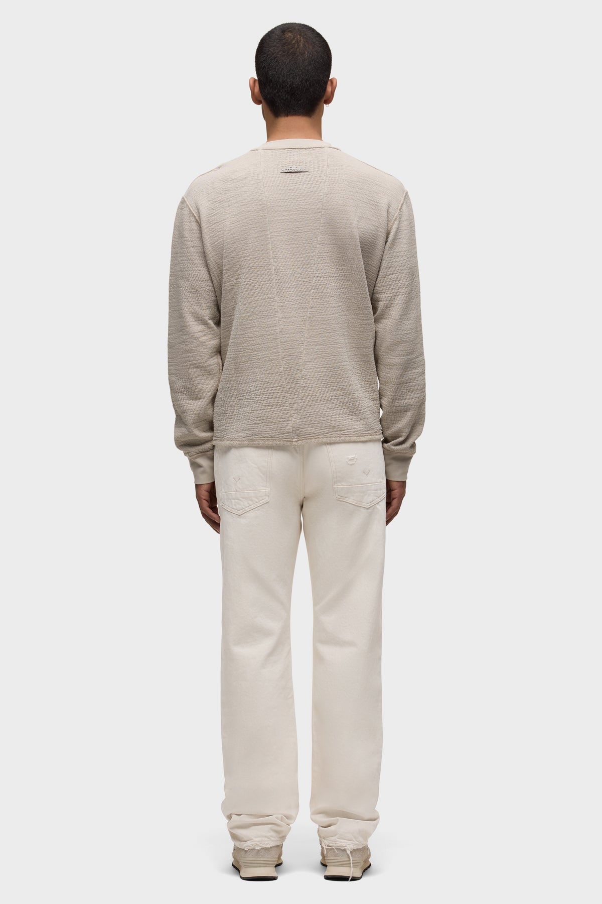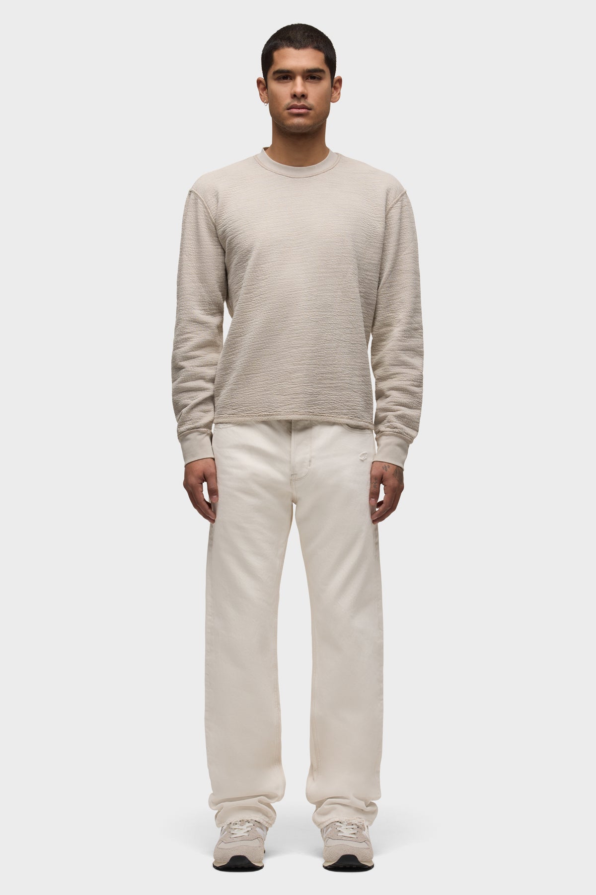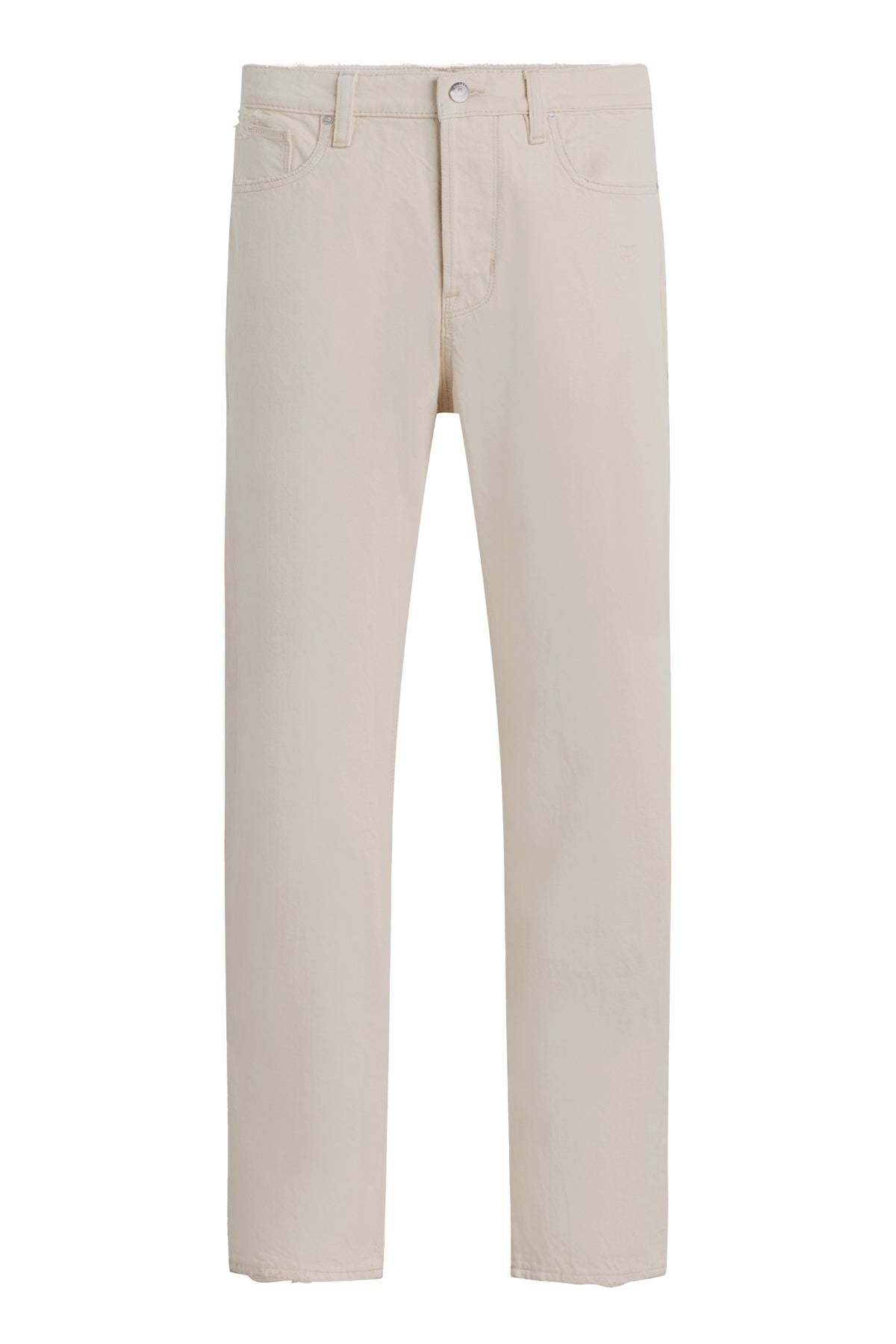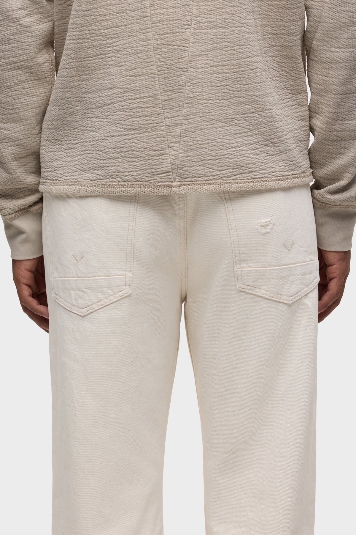The Wes Classic Straight Leg Pant is a mid-rise, easy straight leg that fits slim through the hip. The distressed, overdyed sand shade, Sands, is finished with stone washing. This pair is made of rigid twill with classic five-pocket detailing, contrast topstitching, stainless steel bright-blasted hardware and a white leather back patch. -