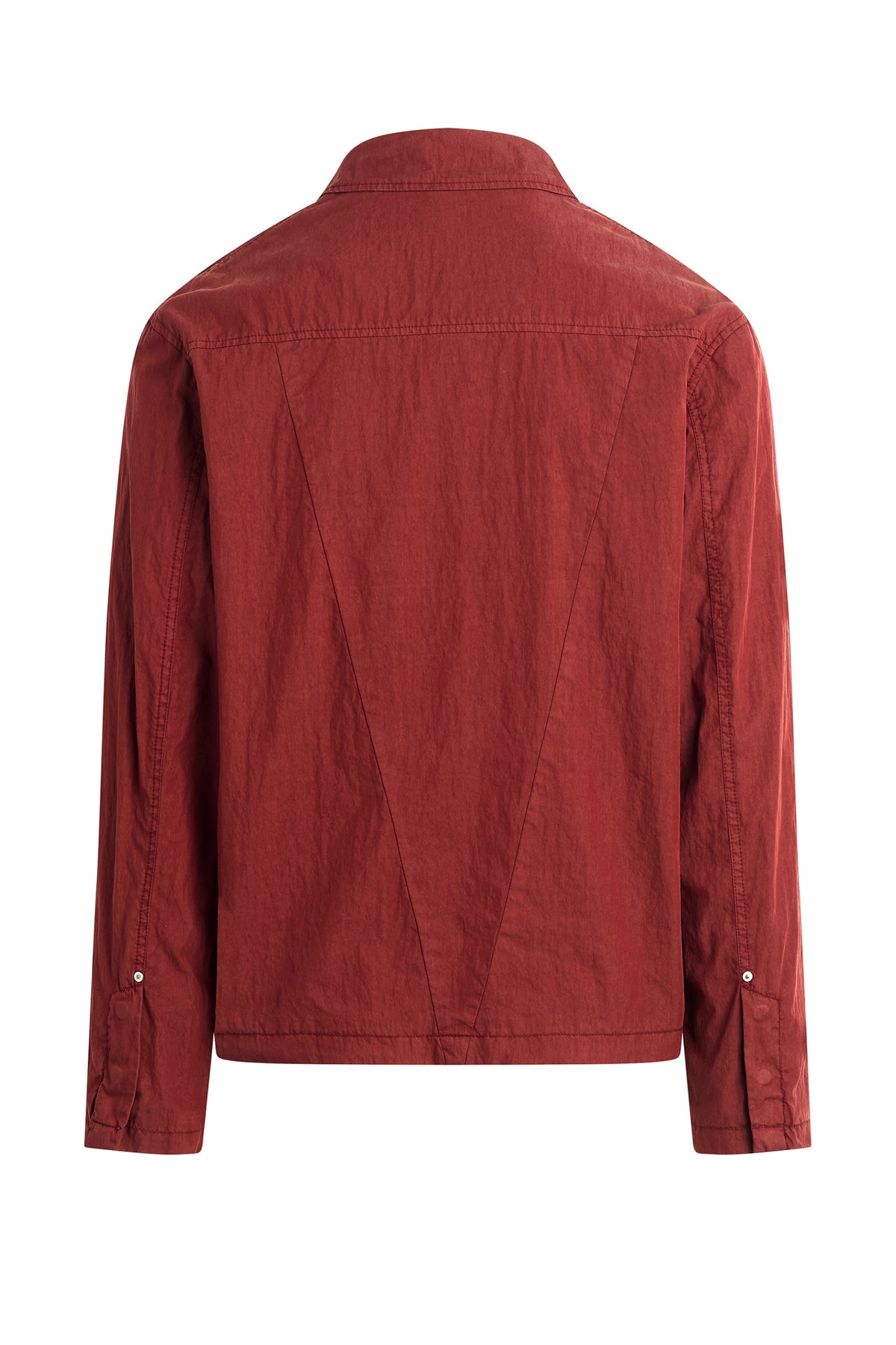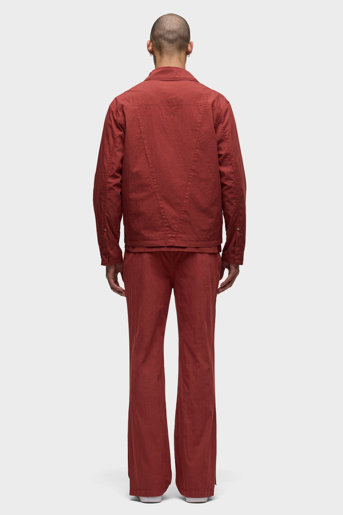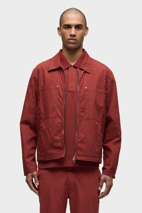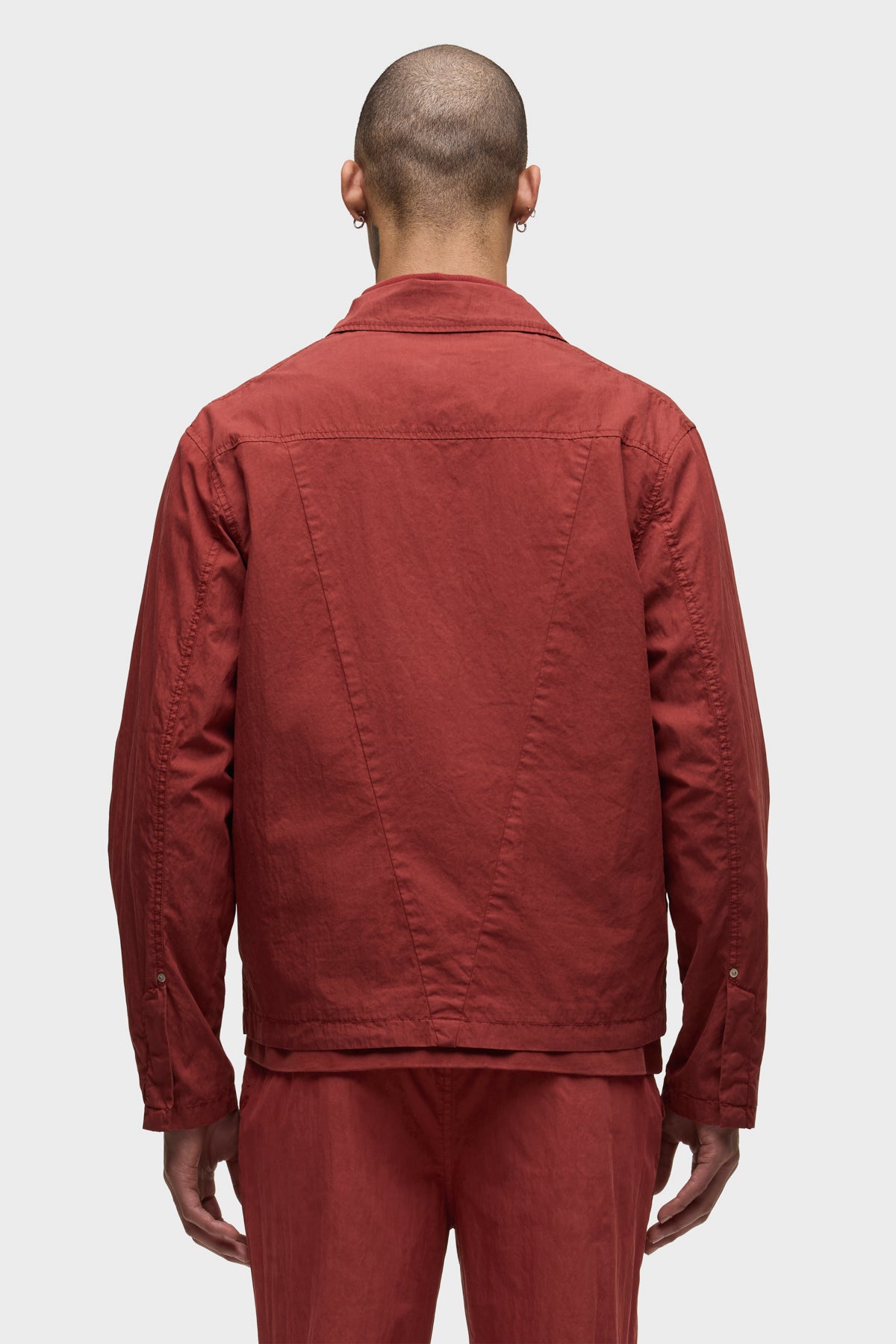 Our Work Jacket in Red Clay offers versatile style that can be dressed up or down. Crafted from lightweight nylon in a reactive overdyed red color, it delivers a refined, sartorial look with the perfect amount of stretch for comfort and ease of movement. -